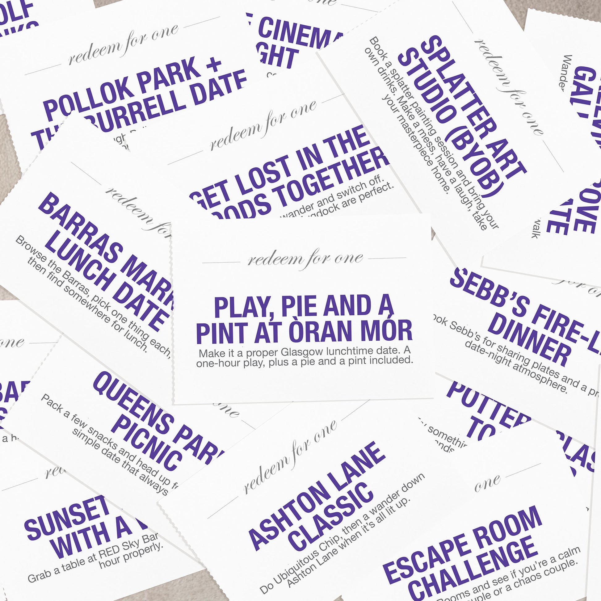 Use the coupons in any order and at any pace, whether that is one spontaneous evening or spread out over time.