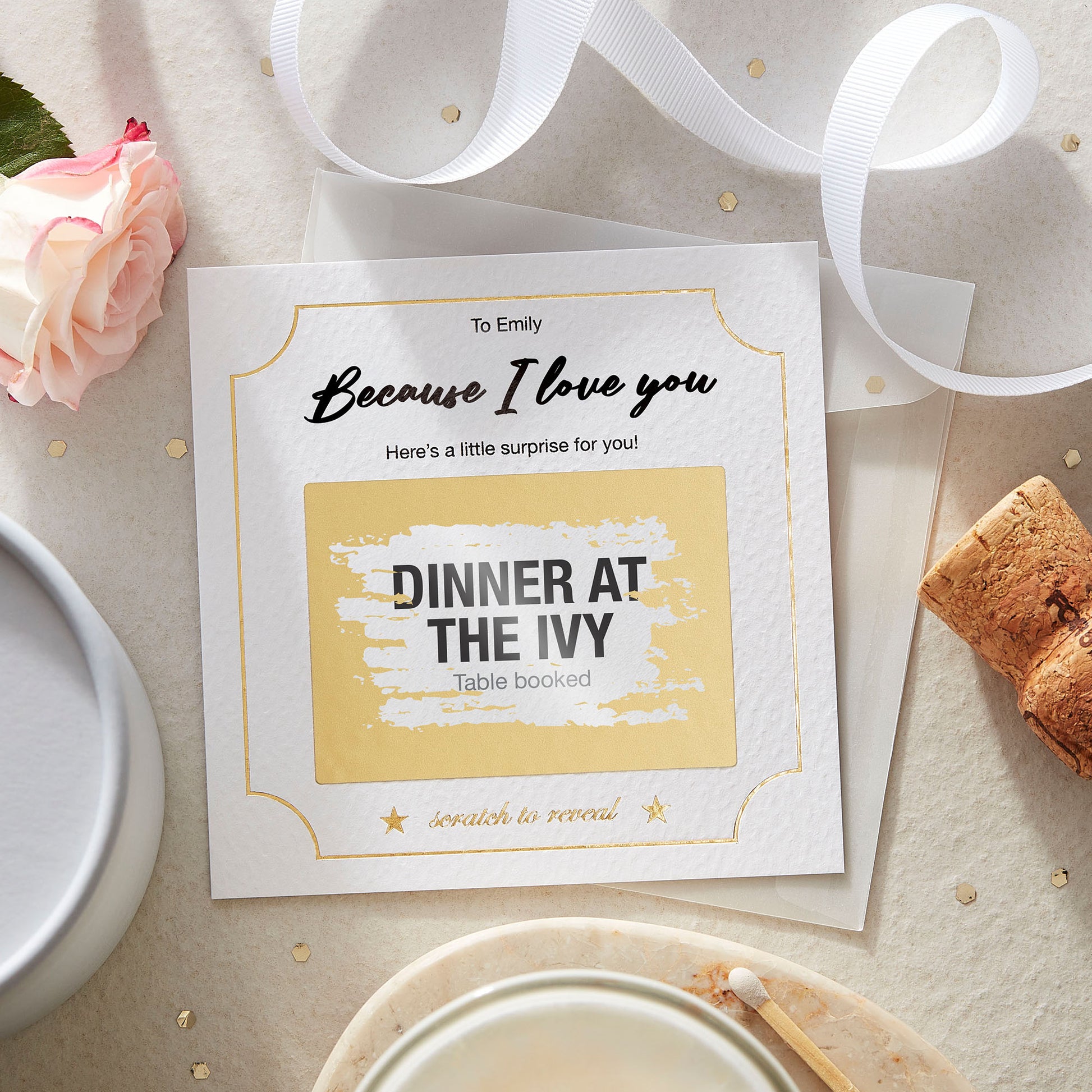 A personalised scratch-off card designed to reveal a thoughtful surprise, simply because you love them.